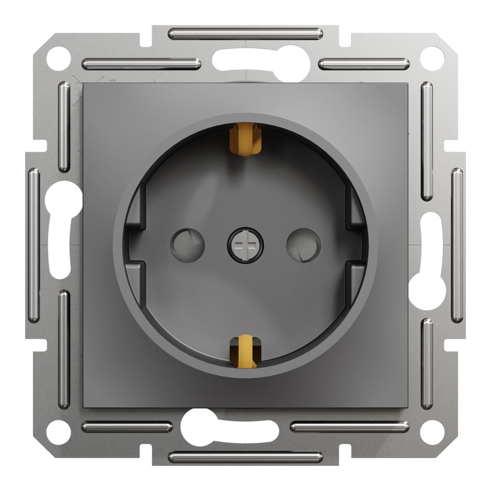 Розетка з заземленням, з захисними шторками Asfora антрацит, Schneider Electric [EPH2900271]