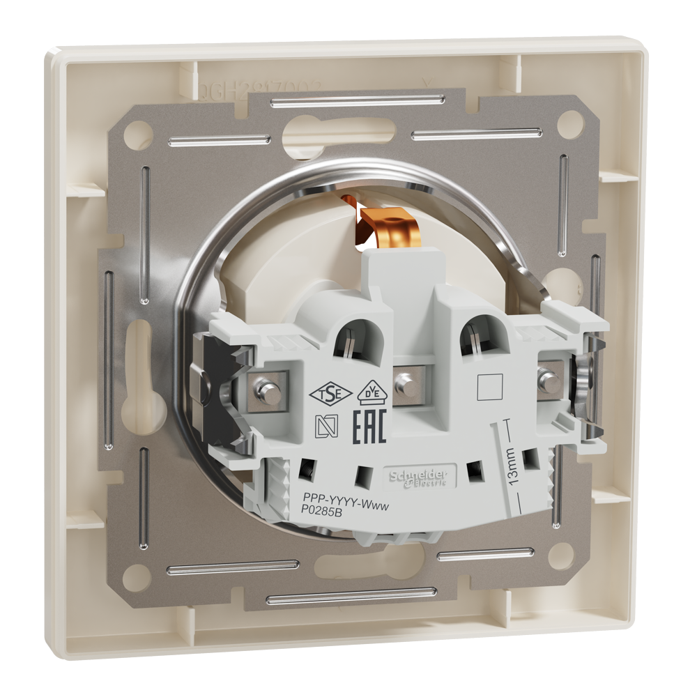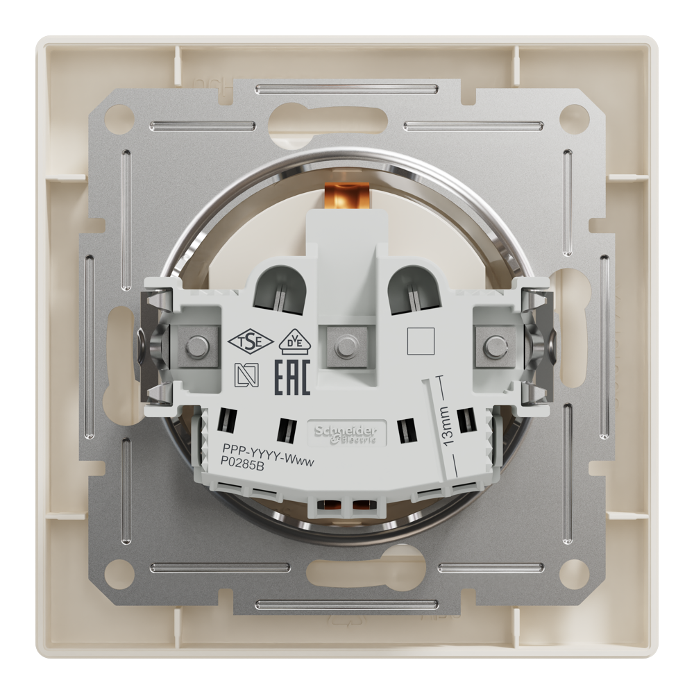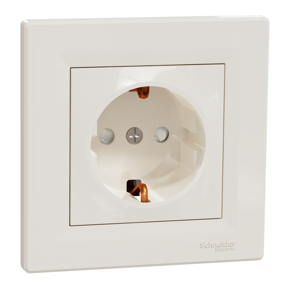 Розетка з заземленням з захисними шторками крем Asfora, Schneider Electric [EPH2900223]