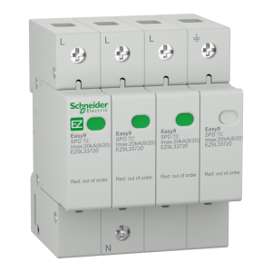 Пристрій захисту від імпульсних перенапруг (Пзіп) Easy9 - це низьковольтне модульне обладнання. Максимальний струму розряду Imax 20 кА, пристрій рекомендований для середнього рівня ризику. Захист цього Пзіп необхідно забезпечити автоматичним вимикачем на 25 А з кривою С. Максимальна безперервна робоча напруга Uc становить 275 В змінного струму. Номінальний струм розряду In становить 10 кА. Максимальний рівень захисту від напруги Up становить 1,3 кВ. Призначений для встановлення на DIN-рейку. Його ширина становить 8 кроків по 9 мм. Відповідно до стандарту IEC 60529, ступінь захисту IP40 при встановленні в модульну шафу. Робоча температура від -5°C до 60°C. Температура зберігання від -5°C до 70°C. Цей продукт повністю відповідає стандарту IEC 61643-11.
