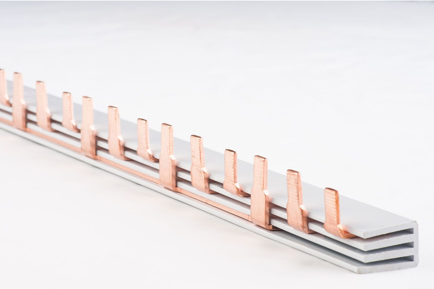 Шина з'єднувальна Pin 3Р/40A злучна штирова (Pin) мідна, відводжувані контакти якої виконані у формі плоских шпинів. Призначена для надійного і послідовного підключення автоматичних вимикачів та інших модульних електротехнічних пристроїв, а також для виготовлення перекладок між модульними пристроями.