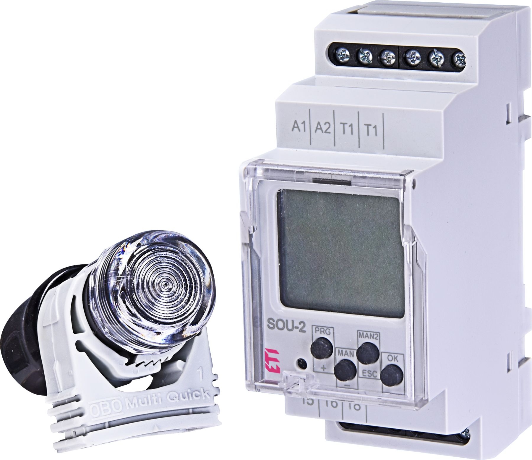Сутінкове реле з цифровим таймером SOU-2 призначене для комутації електричних приладів залежно від рівня освітлення та реального часу.