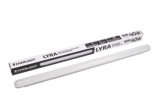 Світильник стельовий Lyra 40Вт 5000К, IP65 - це лінійний світлодіодний світильник Enerlight призначений для освітлення приміщень, які мають високі вимоги до захисту електроприладів від пилу та вологи, а також може використовуватись, як джерело світла на вулиці, так як мають високу ступінь пилевологозахисту IP65. Світильник LYRA може бути встановлений, як на стелі, так і на стіні.