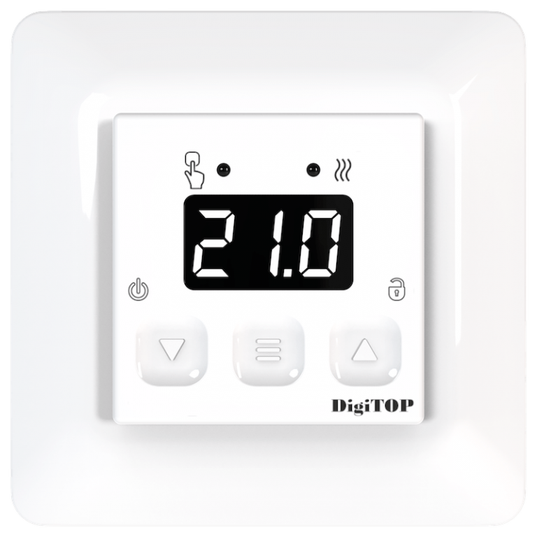 - Безпека – TS-1F оснащений функцією захисту від внутрішнього перегріву. При перевищенні нормальної температури в корпусі терморегулятор відключить навантаження і сповістить про перегрівання. Функція захисту від дітей блокує кнопки терморегулятора і не дозволяє випадково змінити налаштування теплої підлоги.