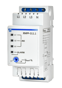 RNPP-311.1 постійно контролює значення напруг в трифазній мережі, зіставляючи їх із значеннями, що встановлені Користувачем регулятором Unom±%.