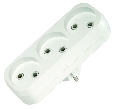 Трійник має три вхідні роз’єми, що дозволяють підключати до електромережі різні електроприлади одночасно.