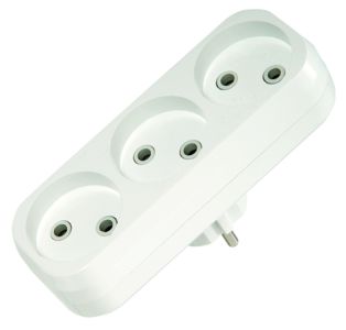 Розетка потрійна (трійник) без з/к білого кольору, призначена для електричних мереж.
