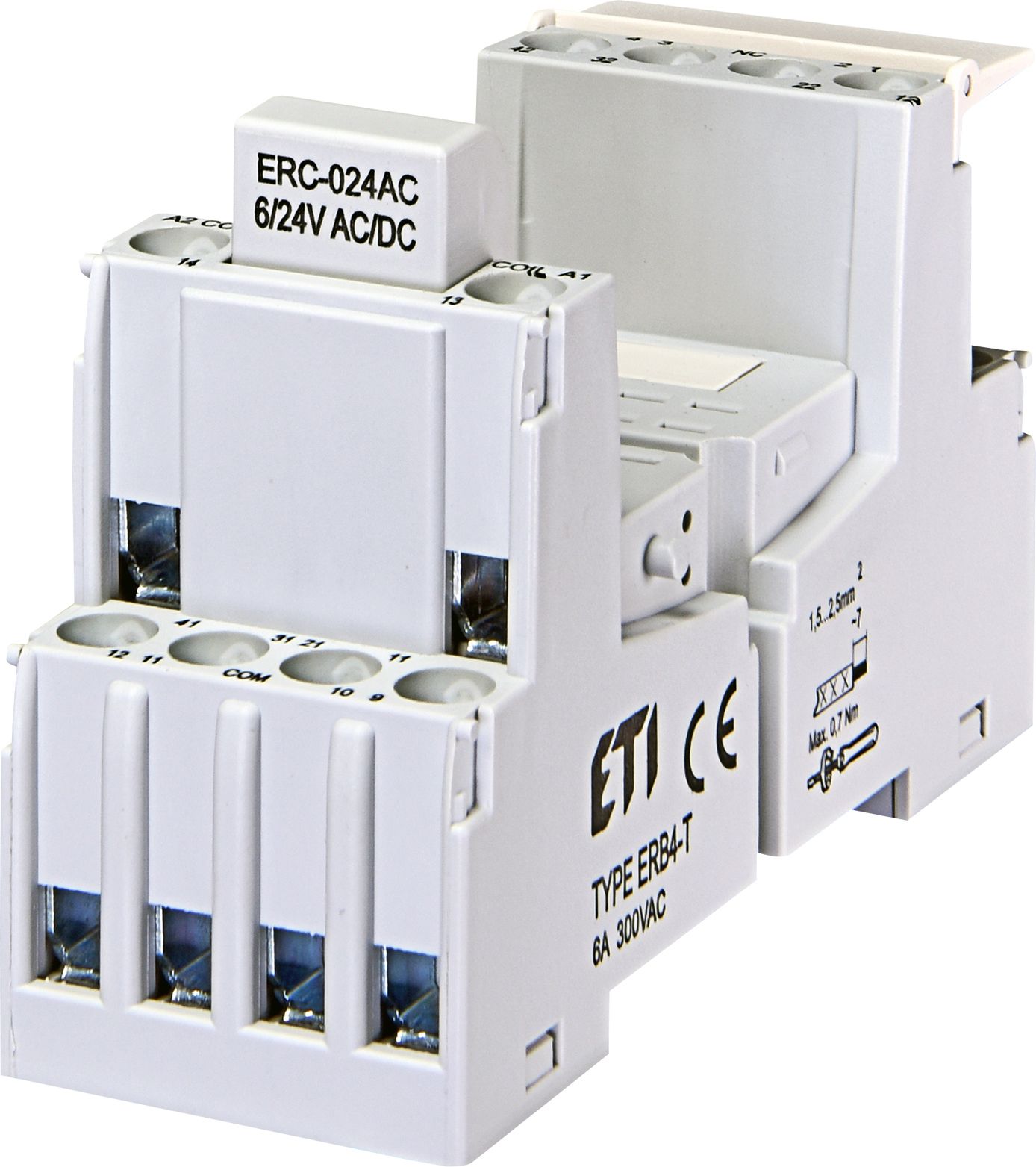 Цоколь ERB4-T призначений для встановлення електромеханічних реле ERM4. Монтаж на DIN-рейку відповідно до EN 60715.