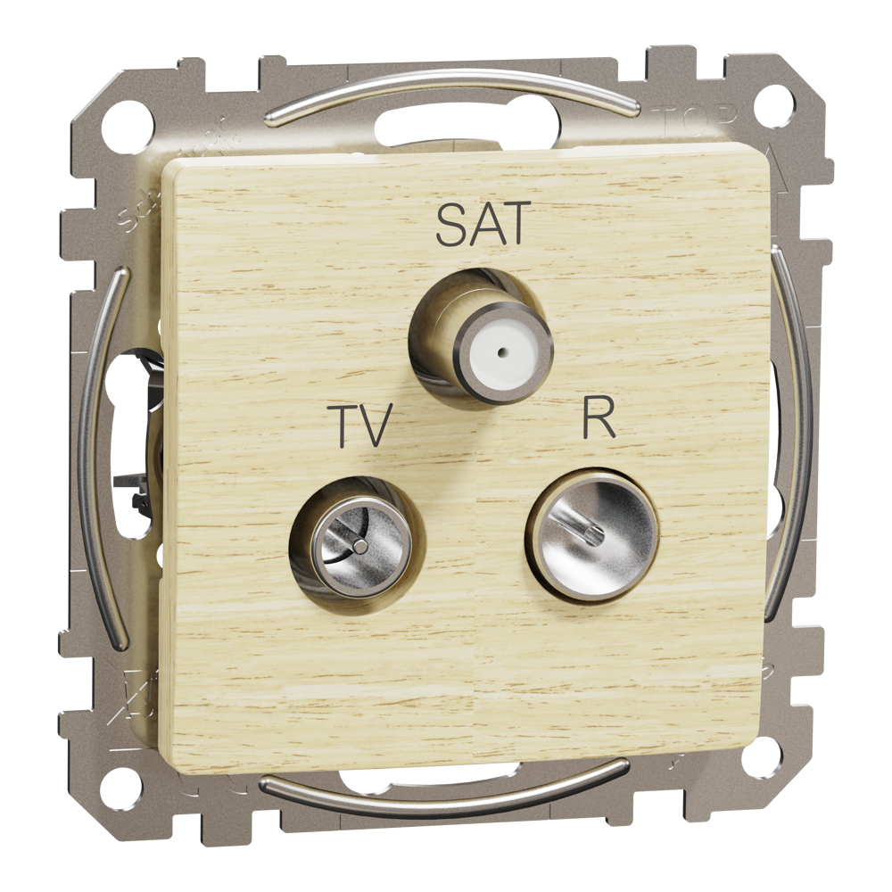 TV/SAT/R розетка, Sedna Design&Elements, TV/SAT/R socket, Sedna Design & Elements, male IEC, female IEC, terminal, 4dB, PRO, колір березового дерева, Schneider Electric, [SDD180481]