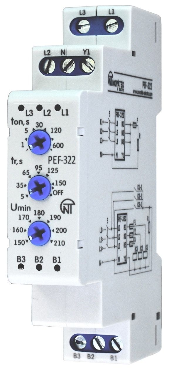 Універсальний автоматично-електронний перемикач фаз PEF-322 призначений для живлення промислового і побутового однофазного навантаження 230 B / 50 Гц від трифазної чьотирьохпровідної мережі 3х380 + N з метою забезпечення безперебійного живлення та захисту від недопустимих коливань напруги в мережі. Застосовується для відеоспостереження, сигналізації, мережевого обладнання, для засобів промислової автоматизації, побутової електроніки тощо).