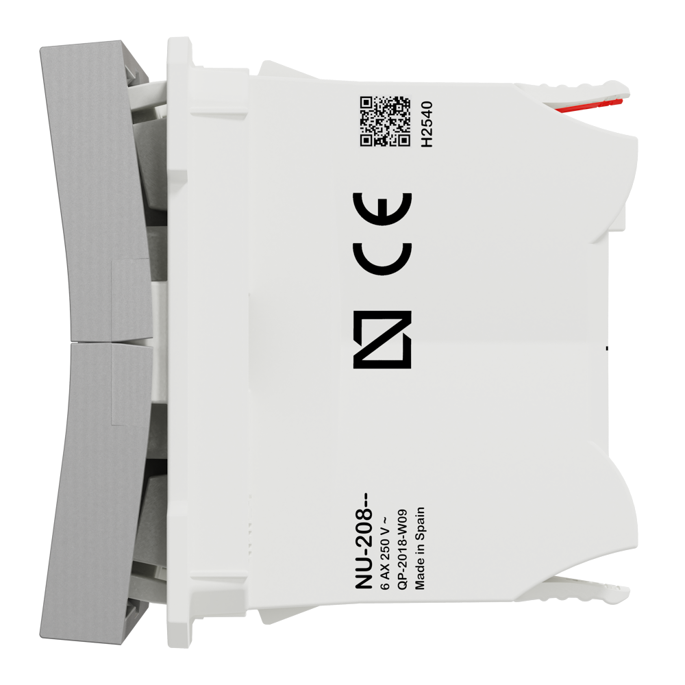 Вимикач для жалюзі 2-клавішний схема 4, 6 А, 2 модулі алюміній