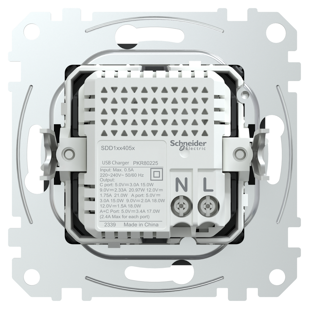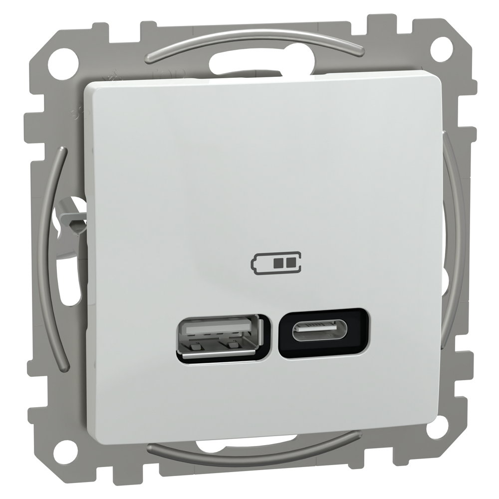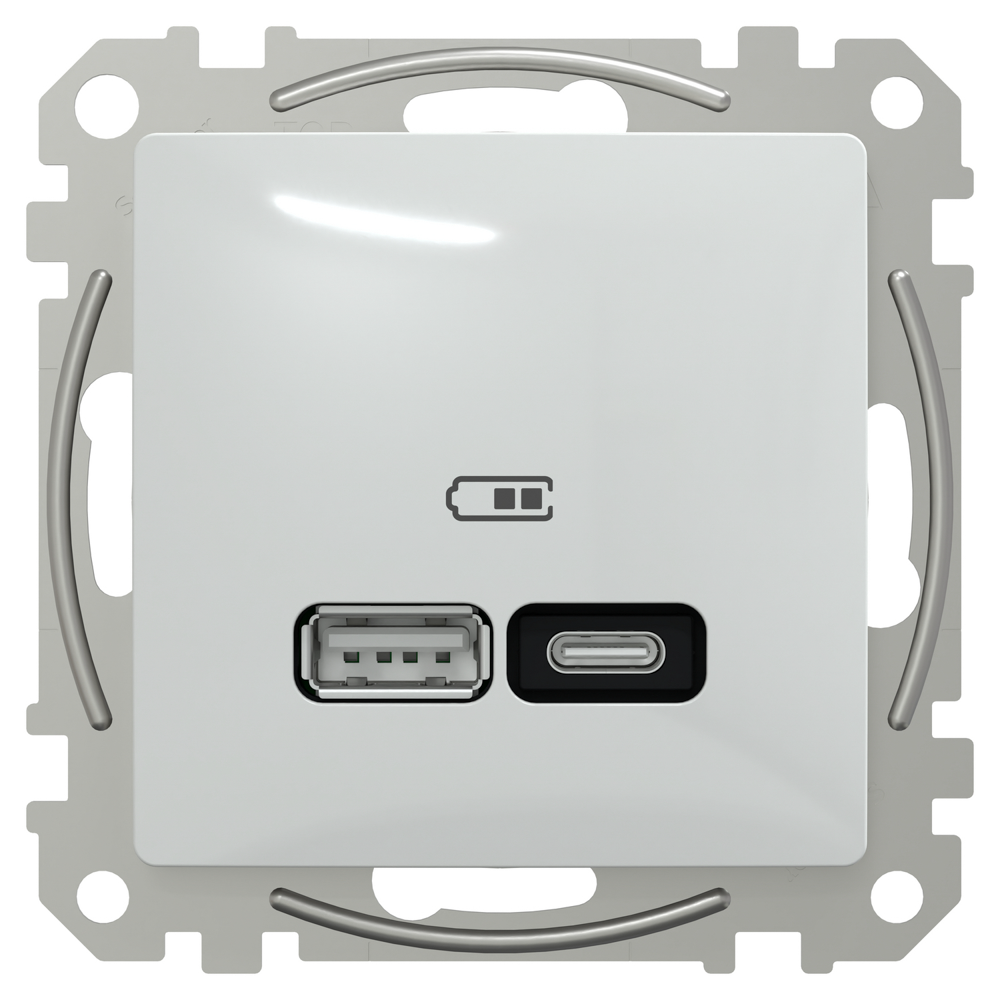 USB розетка | USB розетка, Sedna Design&Elements, USB розетка, Sedna Design & Elements, тип A+C, 3 A, 21 Вт, білий (ral 9003), Schneider Electric, [SDD111405]