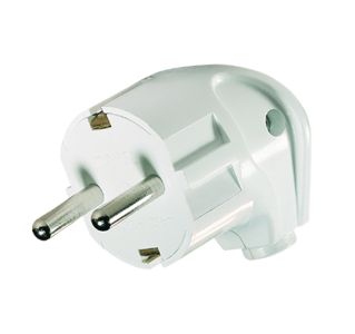 Вилка має заземлюючий контакт, що надає додатковий захист у використанні електроприладів. Кутова форма дозволяє зменшити виступ вилки з розетки та робить більш компактне розміщення електроприладів біля стіни або меблів.