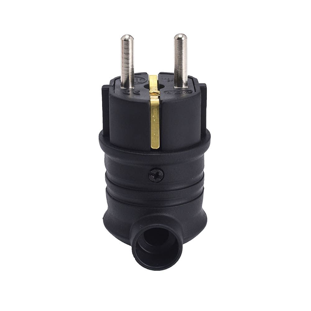 Вилка каучукова кутова AKEF 2Р+РЕ, 16А, IP44, чорна, Bylion [403351]