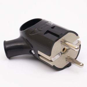 Вилка має заземлюючий контакт, що надає додатковий захист у використанні електроприладів. Кутова форма дозволяє зменшити виступ вилки з розетки та робить більш компактне розміщення електроприладів біля стіни або меблів.