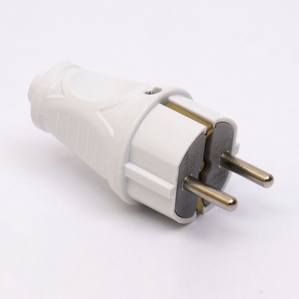 Вилка пряма з з/к FDW 16A, білого кольору - це виріб, який використовується для приєднання побутових приладів до електромережі.
