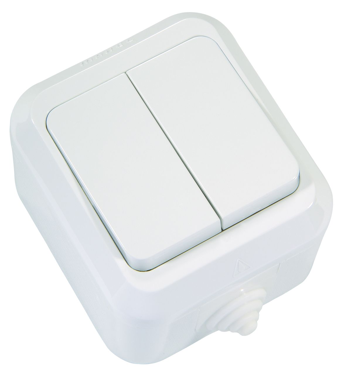 Вимикач двоклавішний IP44 без підсвітки білий Makel 18301 накладного типу монтажу забезпечує легке кріплення до стіни. Вимикач має дві клавіші, для управління кількома джерелами світла з однієї точки. Це дозволяє збільшувати або зменшувати рівень освітленості приміщення, створюючи більший комфорт для його мешканців. Цей вимикач із вологозахищеної серії ІР44, яка забезпечує захист від бризок води у вологих приміщеннях. Білий колір вимикача чудово поєднається з різними стилями інтер'єру.