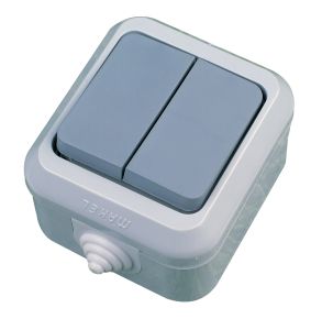 Вимикач двоклавішний IP44 без підсвітки сірий Makel 18101 накладного типу монтажу забезпечує легке кріплення до стіни. Вимикач має дві клавіші, для управління кількома джерелами світла з однієї точки. Це дозволяє збільшувати або зменшувати рівень освітленості приміщення, створюючи більший комфорт для його мешканців. Цей вимикач із вологозахищеної серії ІР44, яка забезпечує захист від бризок води у вологих приміщеннях. Сірий колір вимикача чудово поєднається з різними стилями інтер'єру.