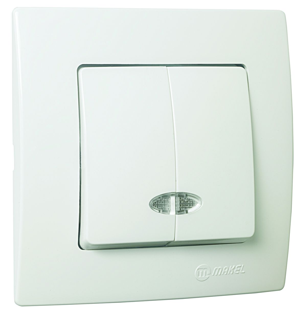 Вимикач двоклавішний Lillium Natural Kare, з підсвіткою, білий, Makel [32001023]