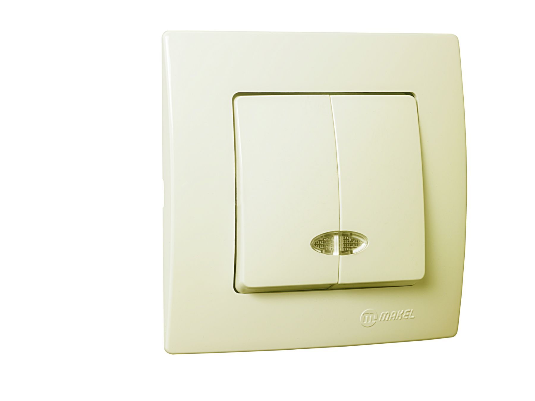 Вимикач двоклавішний Lillium Natural Kare, з підсвіткою, кремовий, Makel [32010023]