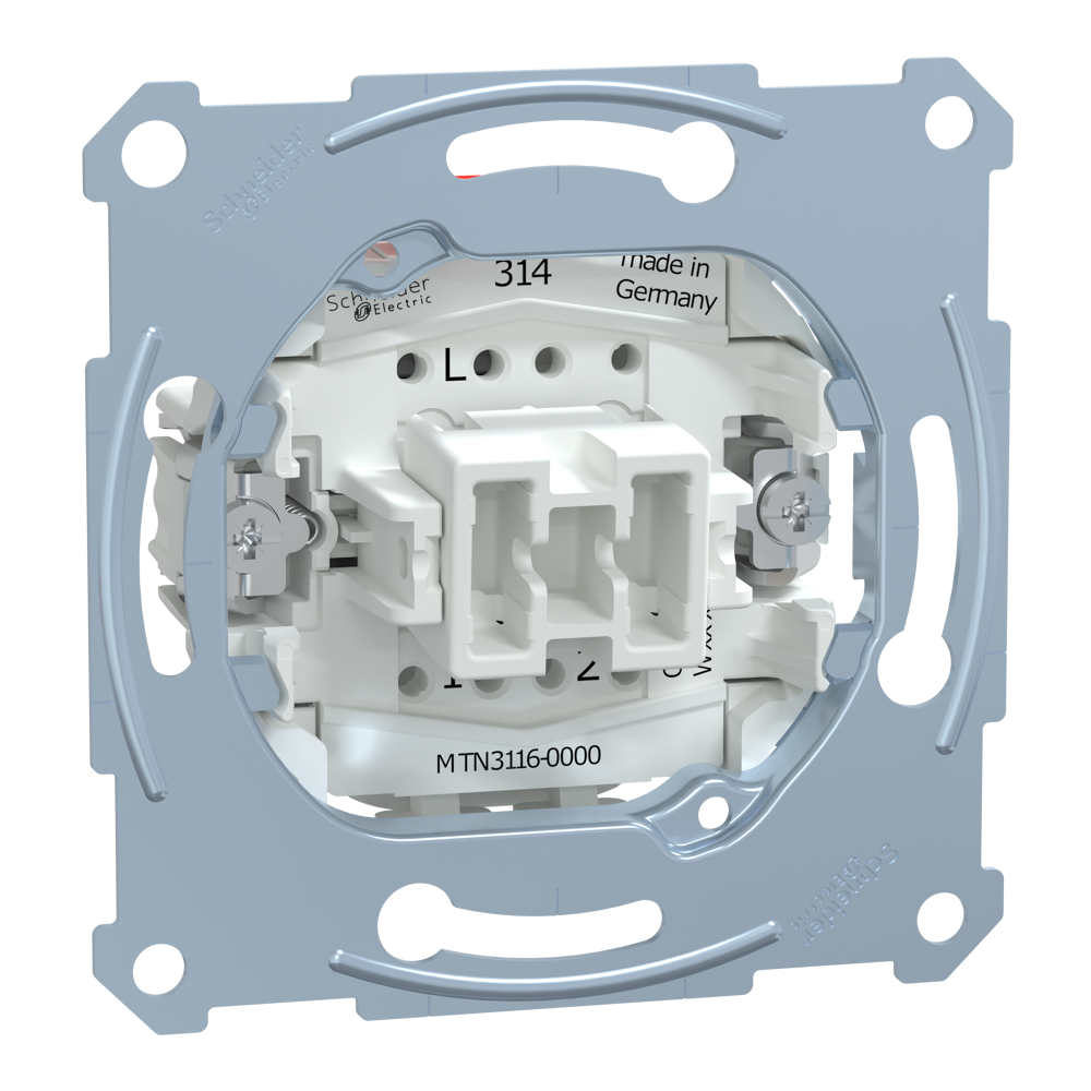 Механізм Schneider Electric Merten MTN3116-0000 - це прохідний клавішний вимикач. Тип кріплення - гвинти та монтажні лапки. Номінальний струм - 10 А. Тип монтажу - прихований. Ступінь захисту IP20. Механізм вимикача виготовлений з металу та пластику. Цей пристрій визначений як екологічний продукт преміум класу з мінімальним використанням небезпечних речовин. Не містить ртуті. Механізми Merten можна використовувати в будь-якому типі установки CEE60, за допомогою коробок для зовнішнього монтажу і рішень IP44 для всіх застосувань. Механізми Merten можна комбінувати з різними дизайнами накладок і рамок Merten System M, Merten Artec, Merten Antique.