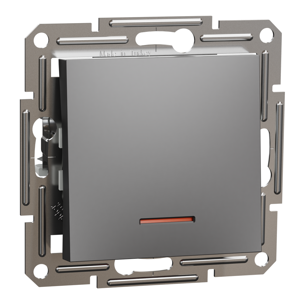 Вимикач одноклавішний, з підсвіткою, самозажимний, Asfora антрацит, Schneider Electric [EPH1400171]