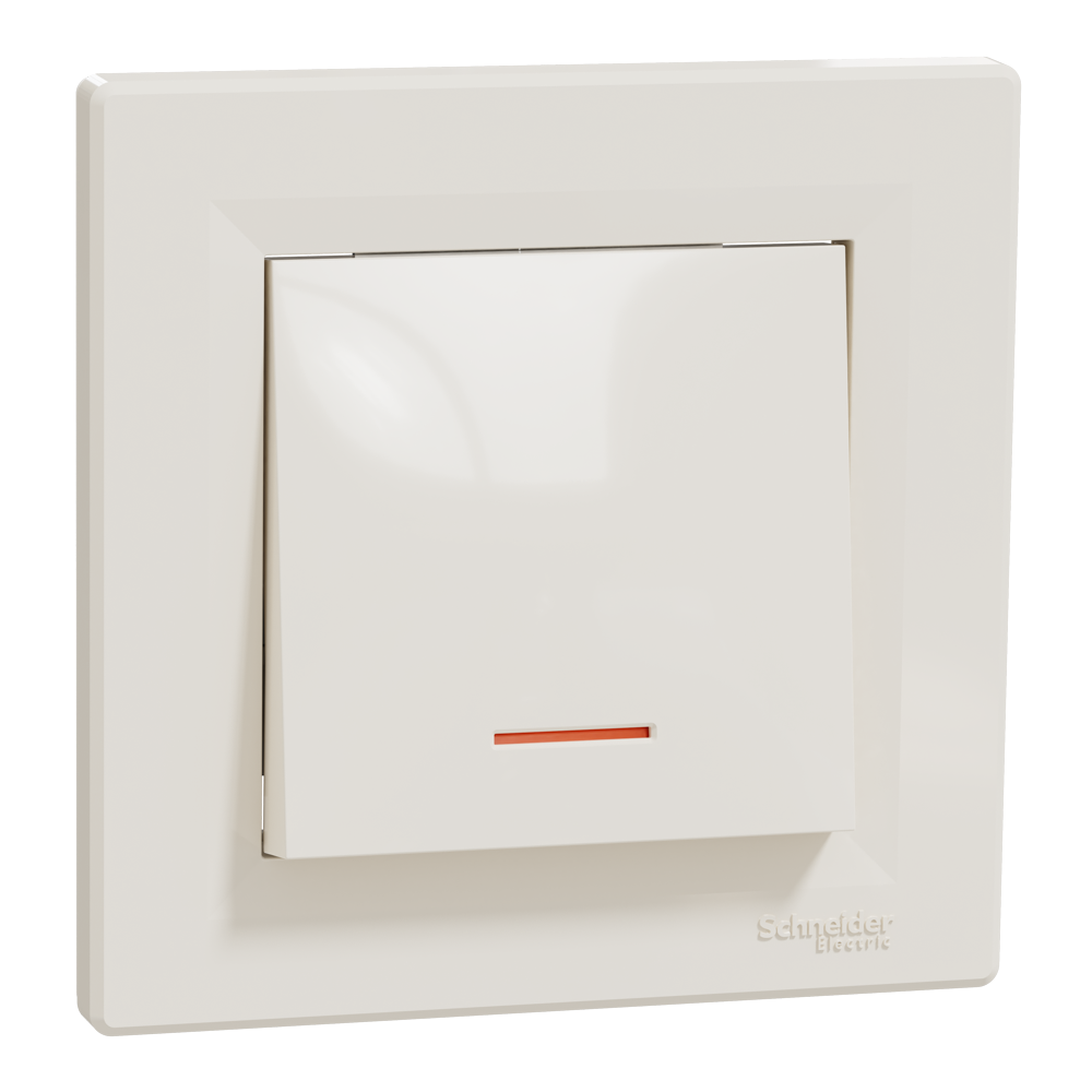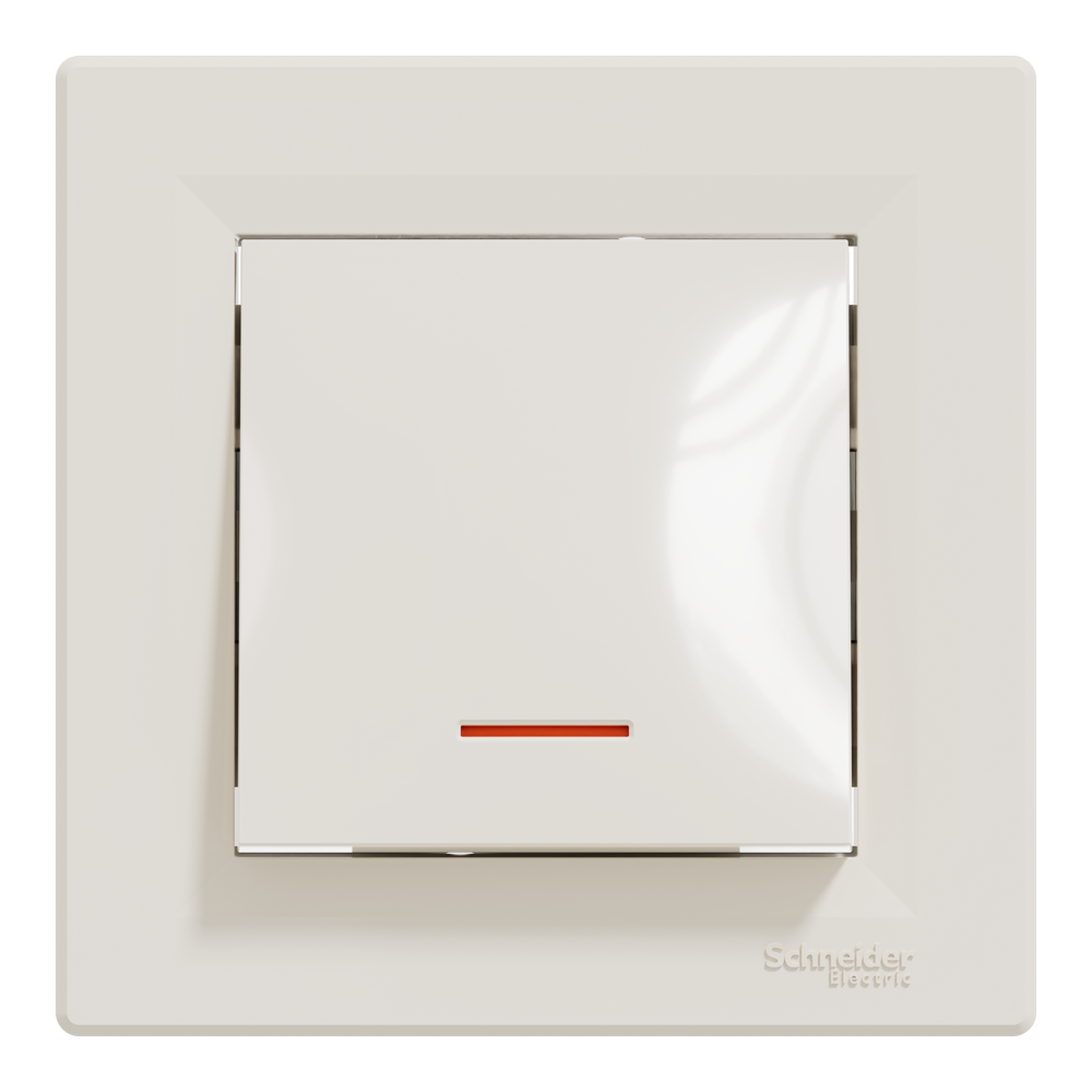 Вимикач одноклавішний, з підсвіткою, самозажимний, крем Asfora, Schneider Electric [EPH1400123]