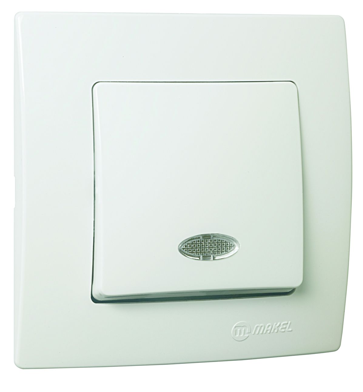 Вимикач прохідний одноклавішний Lillium Natural Kare, з підсвіткою, білий, Makel [32001025]
