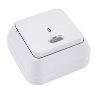 Вимикач прохідний одноклавішний з підсвіткою білий Makel 45125 накладного типу монтажу, забезпечує легке кріплення до стіни або іншої поверхні. Серія вимикачів зовнішньої установки пропонує швидке та практичне рішення у приміщеннях, де у стінах відсутня електроустановка прихованого монтажу. Прохідний вимикач дозволяє керувати освітленням із будь-якої зручної частини кімнати. Його схема функціонування продумана таким чином, щоб унеможливити повертатися до основного вимикача. Ще одна перевага вимикача з підсвічуванням полягає в тому, що його добре видно у темряві.