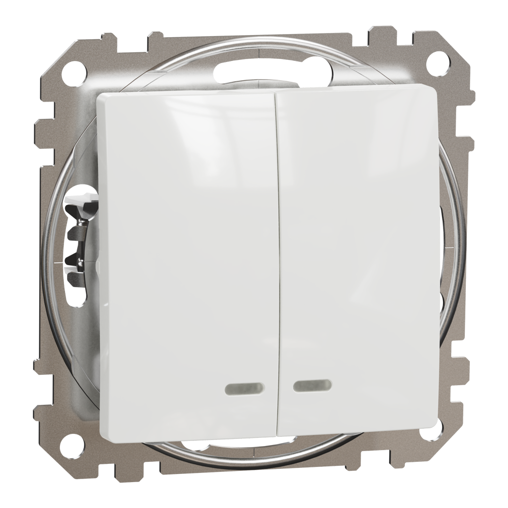 Вимикач, Sedna Design&Elements, Двоклавішний вимикач з підсвіткою Білий Sedna Design, білий (ral 9003), Schneider Electric, [SDD111105L]