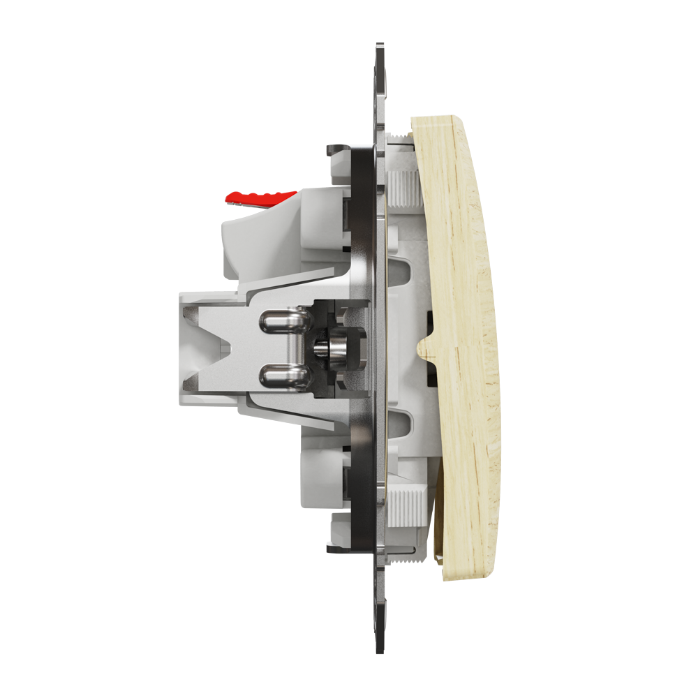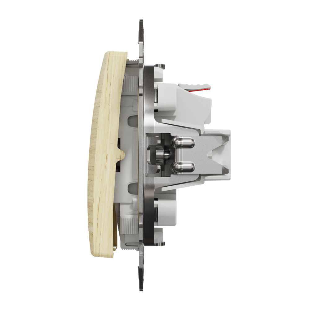 Ключові особливості: серія Sedna Design&Elements, вимикач, колір колір березового дерева, матеріал термопластик abs-uv, габарити 73 мм × 73 мм × 37 мм.