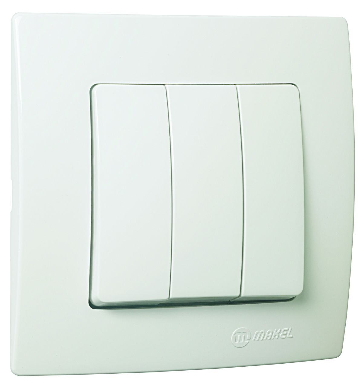Вимикач триклавішний Lillium Natural Kare без підсвітки білий Makel 32001091 - це вбудований пристрій, який використовується лише з внутрішньою електричною проводкою. Вимикач внутрішнього монтажу естетично виглядає за рахунок прихованої проводки. Він майже не виступає зі стіни. Вимикач має три клавіші, для управління кількома джерелами світла з однієї точки. Це дозволяє збільшувати або зменшувати рівень освітленості приміщення, створюючи більший комфорт для його мешканців. Колір вимикача чудово поєднуються з різними стилями інтер'єру.