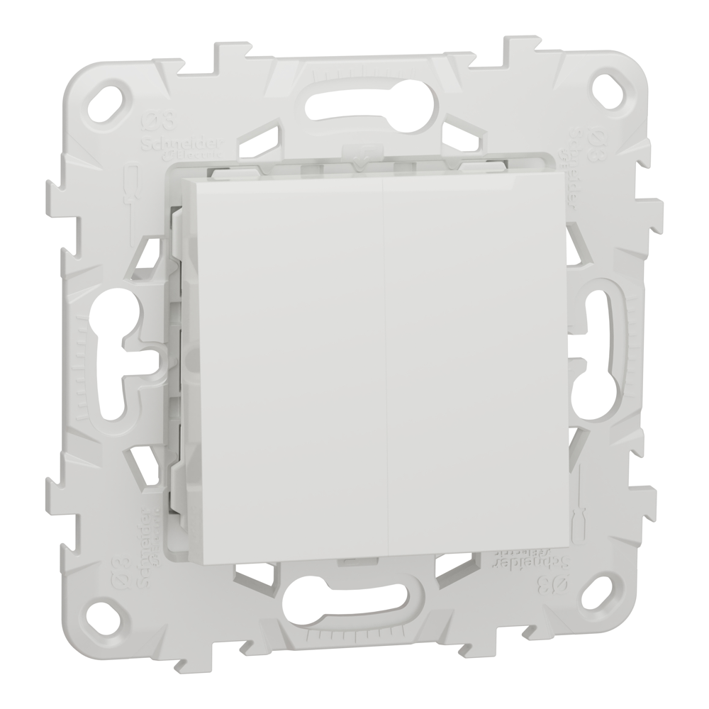 Вимикач, 2-клавішний, 10 А, 2 модулі, білий, Unica New, Schneider Electric [NU521318]