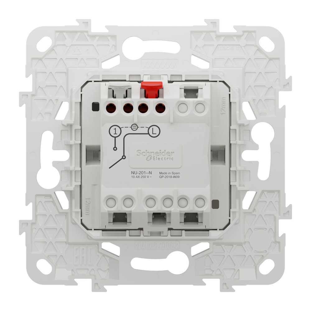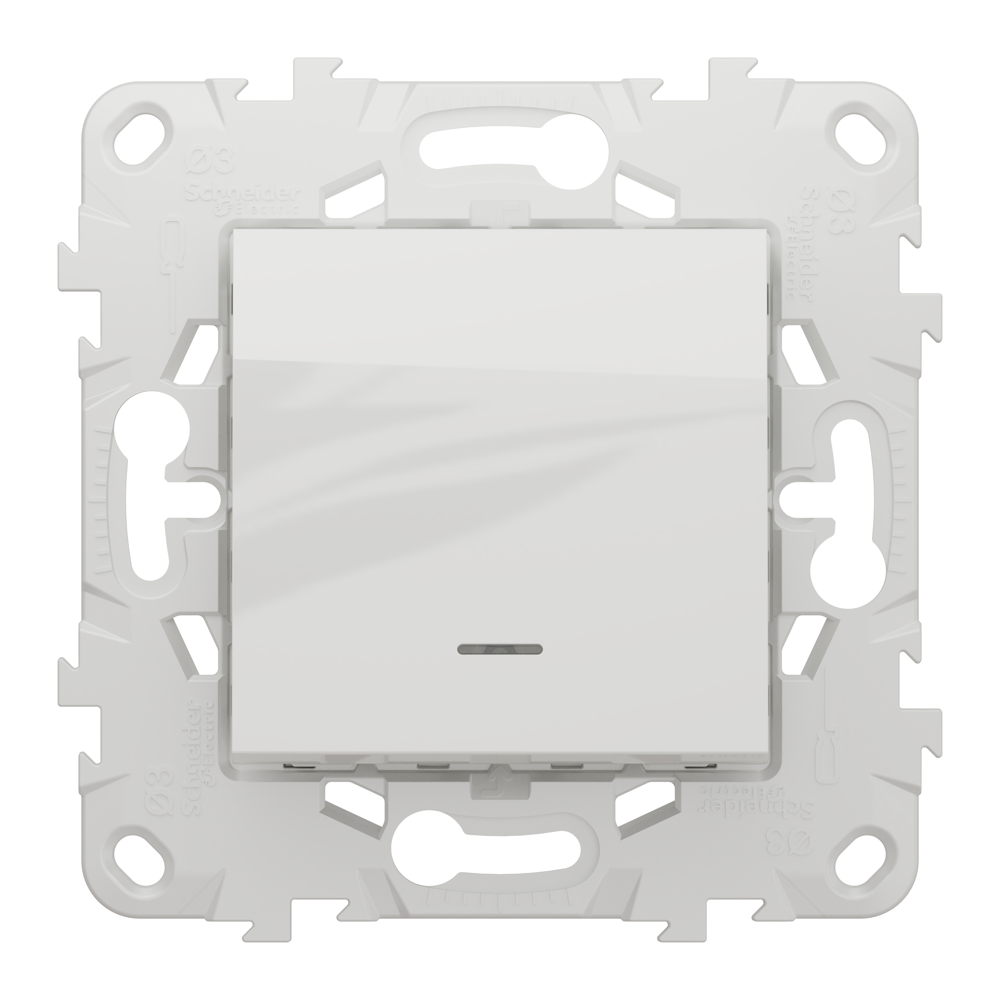 Вимикач, 1-клавішний, 10 А, 2 модулі, білий, Unica New, Schneider Electric [NU520118N]
