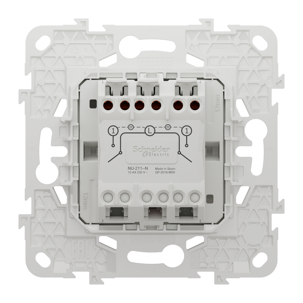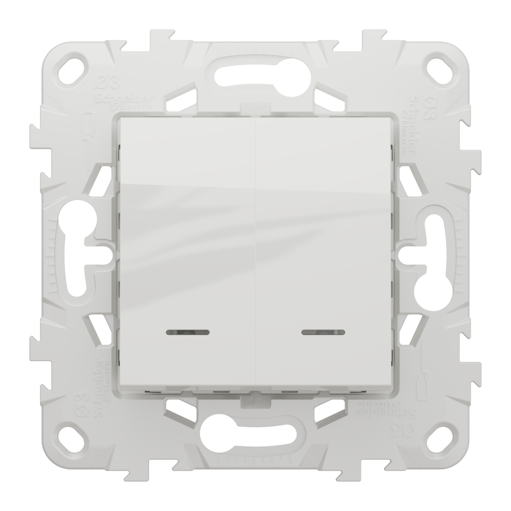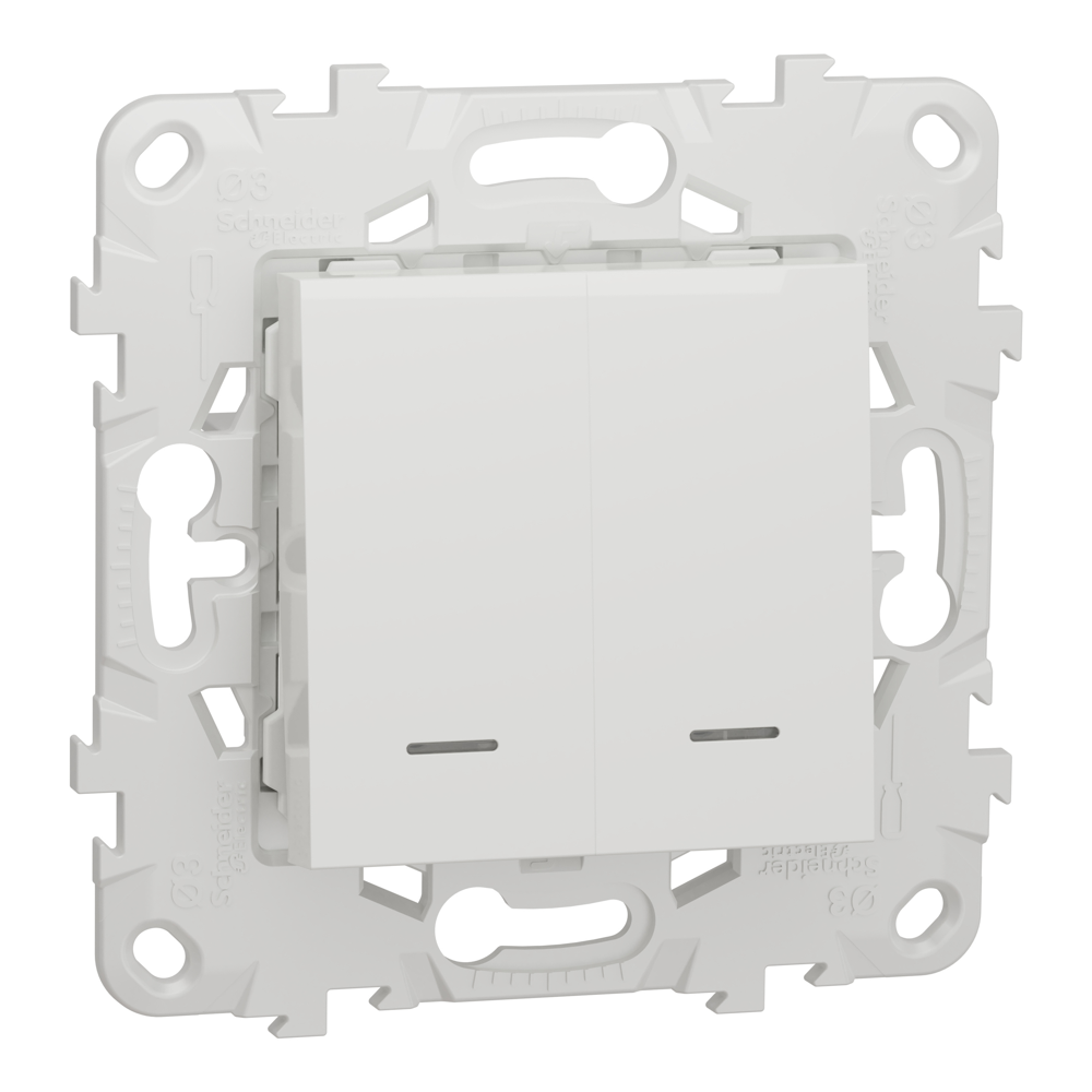 Вимикач, 2-клавішний, 10 А, 2 модулі, білий, Unica New, Schneider Electric [NU521118N]