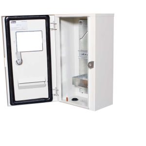 Ящик обліку і розподілу електроенергії ЯУР-1Г-6Л призначений для встановлення автоматичних вимикачів і розподілу електроенергії в електричних мережах. Він дозволяє розмістити однофазний лічильник та 6 модулів і призначений для настінного монтажу. Має дверцята з віконцем для доступу та контролю, до лічильника та автоматів без відкриття.