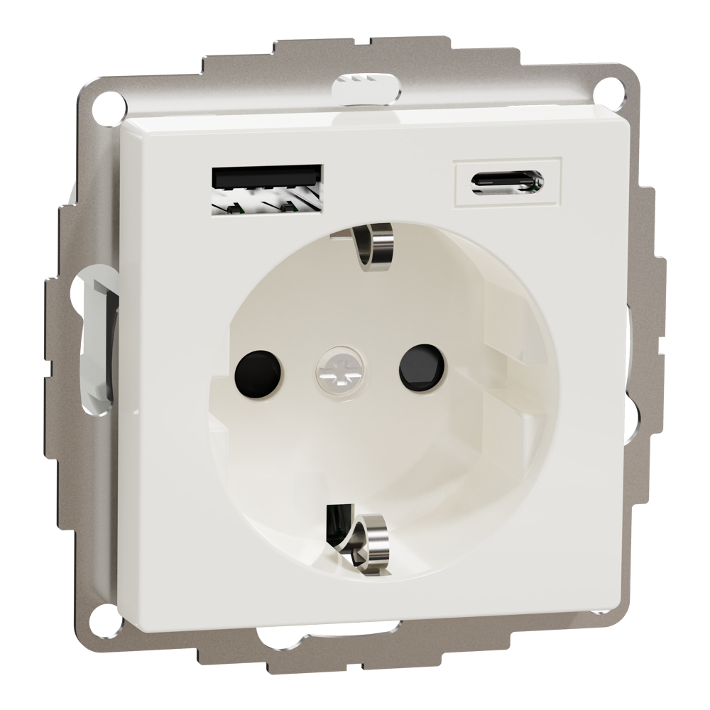 SM Розетка 16 A + USB A+C 3 A, Пол.Білий