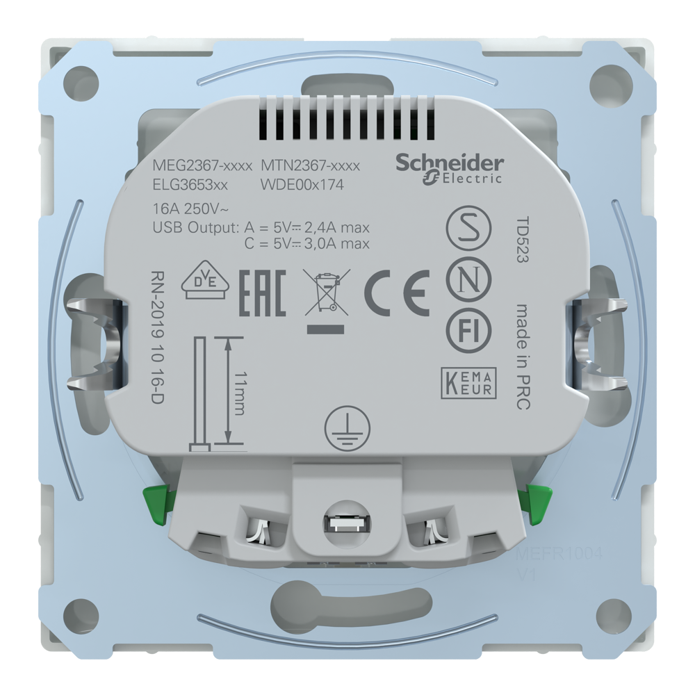 Зарядний пристрій USB + розетка, 16 А, біла, Merten, Schneider Electric [MTN2367-6035]