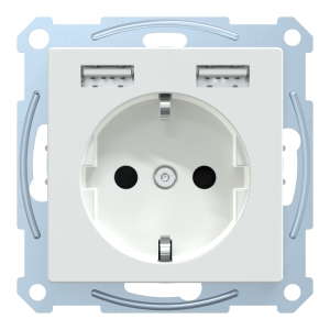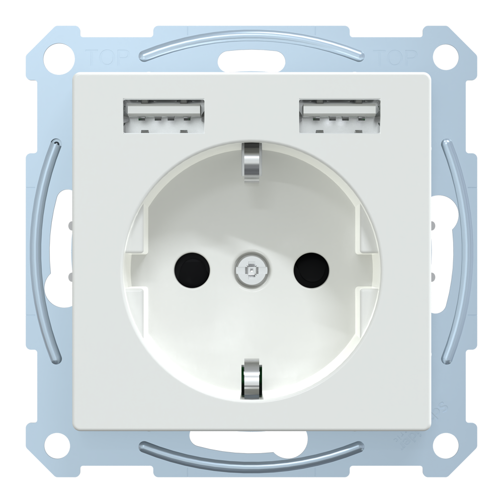 Зарядний пристрій USB + розетка, Merten, Розетка Schuko з 2 USB 2, білий (ral 9016), Schneider Electric, [MTN2366-0325]