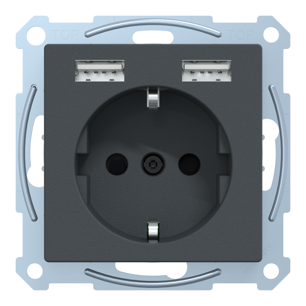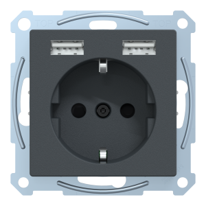 Зарядний пристрій USB + розетка, Merten, Розетка Schuko з 2 USB 2, чорний (ral 7024), Schneider Electric, [MTN2366-0414]
